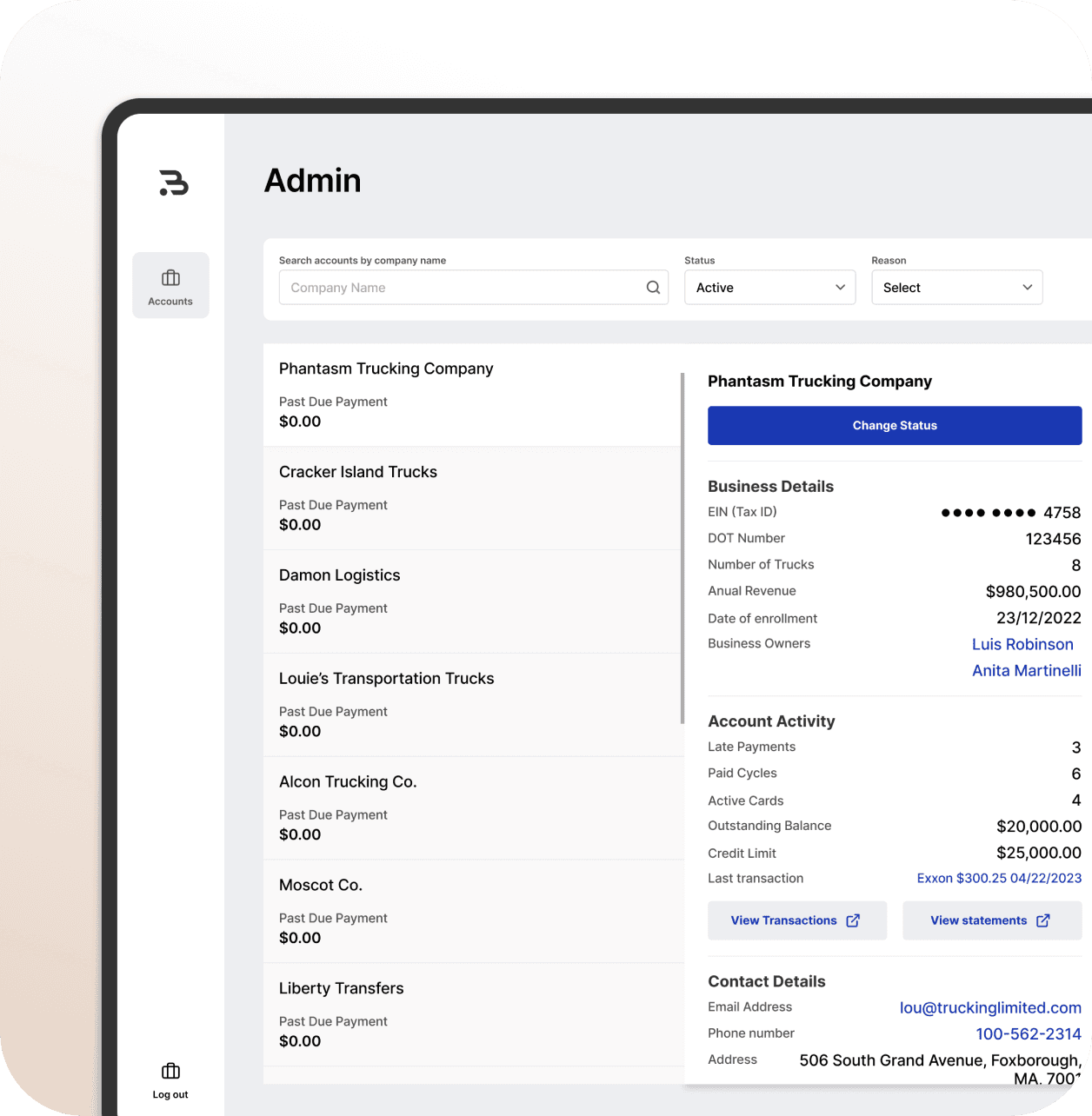 I designed an internal tool for employees and support agents to view all client information, analyze risk, and take quick actions. The tool also facilitated communication with third-party providers to approve or deny credit lines or factoring applications.