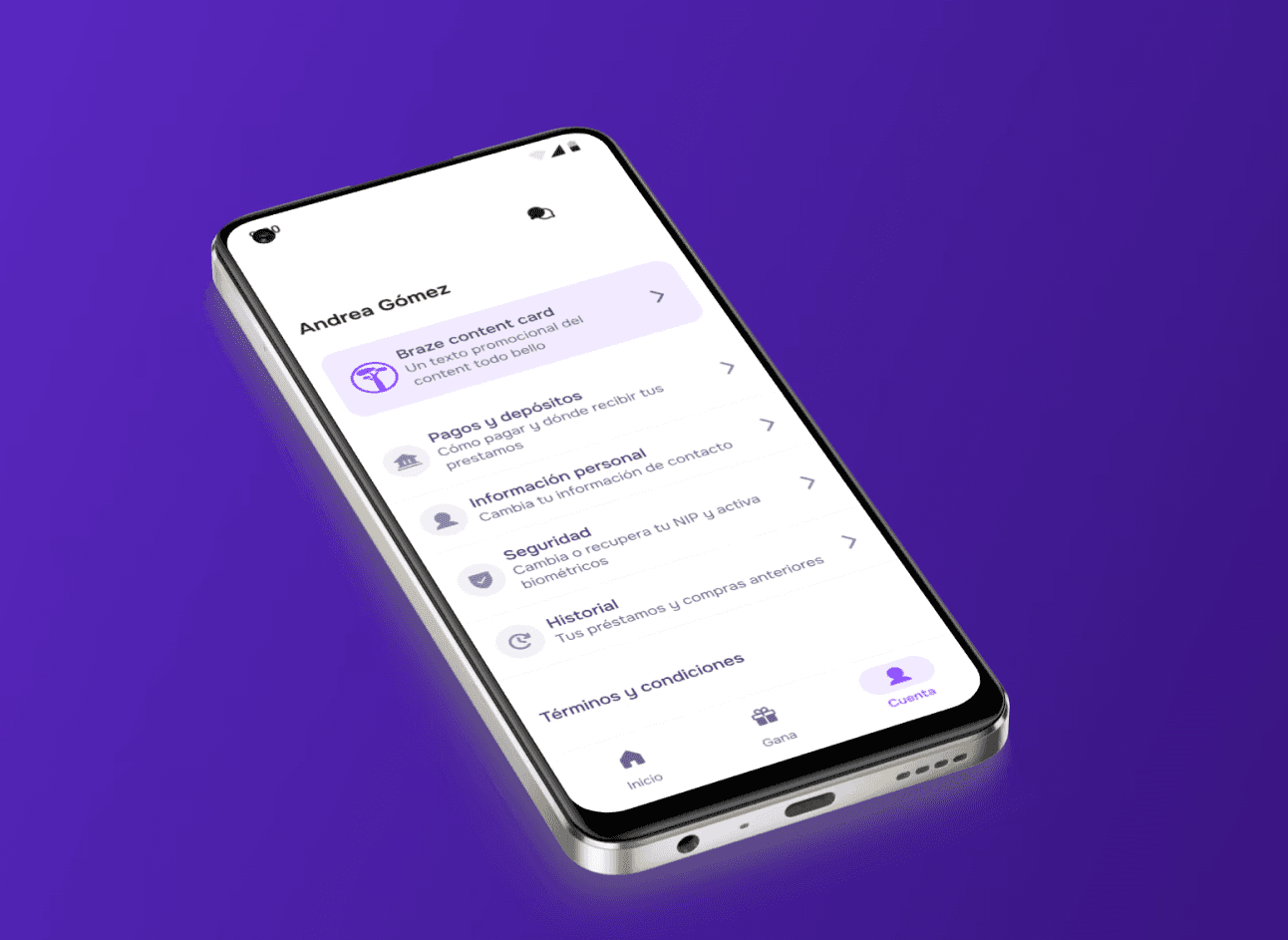 Worked on evolving the current profile section into a comprehensive account settings view for a microloan app, managing multiple teams' needs and addressing user pains. This was done to prepare the app to go from single to numerous product solutions in the long term.